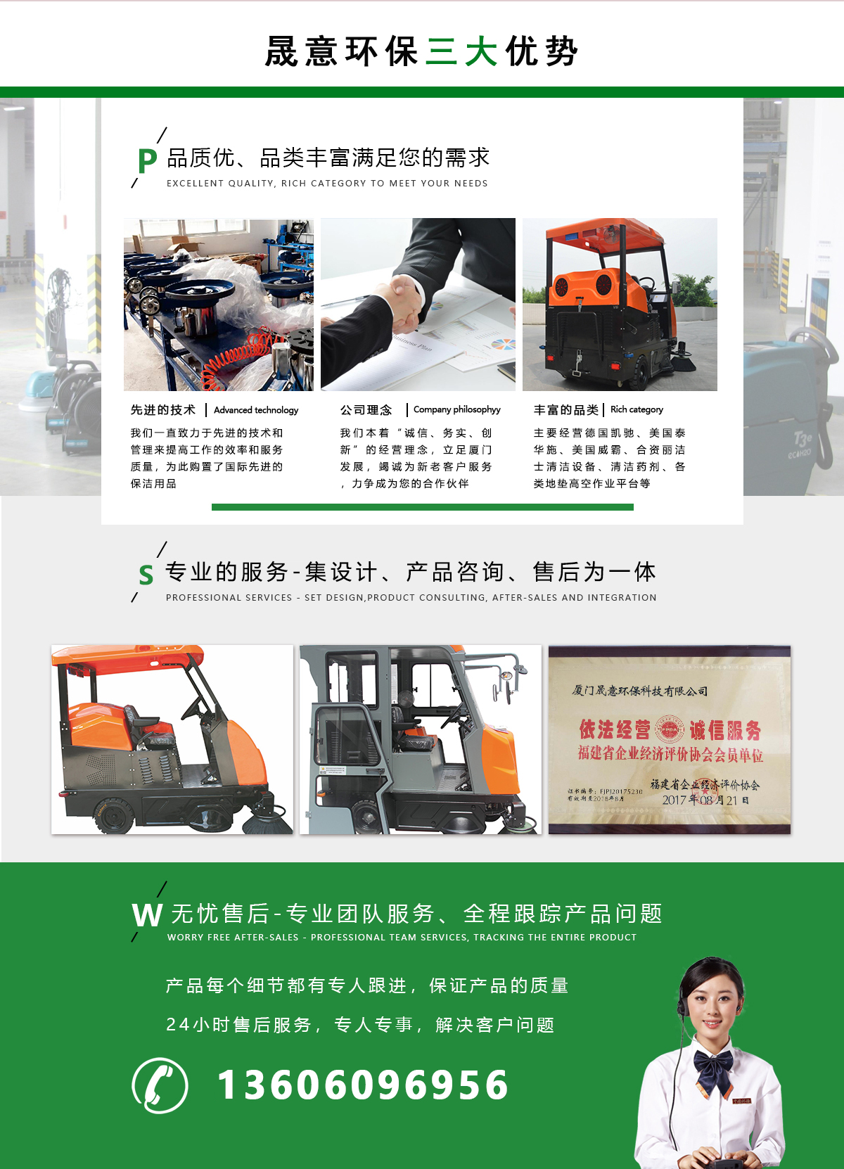 我司是2003年開始專業(yè)從事清潔設備銷售與石材護理保養(yǎng)服務為一體的綜合性公司。主要經(jīng)營德國凱馳、美國泰華施、美國威霸、合資麗潔士清潔設備、清潔藥劑、各類地墊、高空作業(yè)平臺等。供應、酒店、大型工廠、物業(yè)等單位使用。目前我司服務的四、五星級酒店超過100家如艾美酒店、喜來登酒店、溫德姆、郎豪等國家國內(nèi)連鎖品牌。廈門國家電網(wǎng)、七匹狼、鴻星爾克等是我司常年保潔單位。銷售產(chǎn)品:廈門洗地機、廈門掃地機、廈門石材護理、保潔設備、...